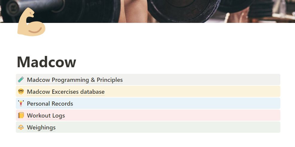 The Madcow strength training program by Belgian strength coach Mehdi is very popular for a reason. With this Notion template you buy everything you need to successfully follow this novice strength training program.
